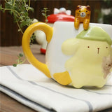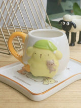 Sip in style with this adorable Cozy Pom Pom Mug, featuring a sleepy yellow puppy dog in a cozy outfit, complete with a tiny plush friend. The ceramic mug’s warm yellow and soft white tones make it perfect for any kawaii lover’s collection.