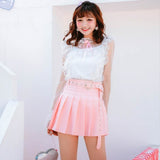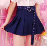 - With a quality adjustable built-in built, with a heart buckle, and silver rivets, this school girl inspired skirt is perfectly kawaii!