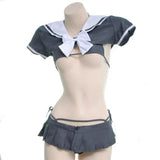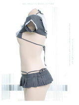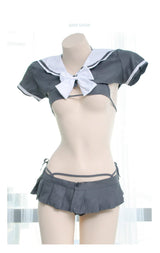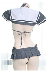 - Featuring quality grey pleated skirt, and matching micro school girl sailor scout inspired crop top, with a matching grey miniature bikini underneath! Everything is included!