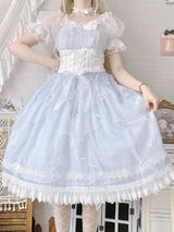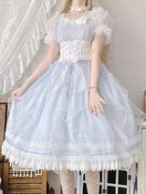 This Light Blue Fairy Dress is the perfect dream outfit for any fan of the kawaii aesthetic! With delicate lace accents and multiple layers of flowing fabric, this dress brings an ethereal and airy look to any wardrobe. Whether you're attending a special event or just want to feel like a fairy for the day, this dress will make you feel elegant and graceful.