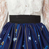 - With gorgeous ruffles, lace trim, and a vibrant midnight compass & star constellation print on dark navy blue backdrop, this skirt looks divine with or without a petticoat!