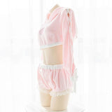 - Includes matching bloomers that are ruffled and ruched for ultra kawaiiness with a cute poofy detachable and optional fluffy white bunny tail on the back!