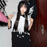 - This cute hoodie is available in black or grey to suit your personal kawaii fashion aesthetic.