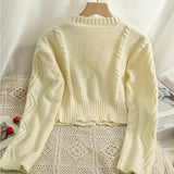 Whether dressing up for a casual day out or layering for a chilly evening, this Cherry Knitted Cropped Cardigan blends functionality with a delightful kawaii aesthetic.