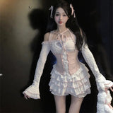 - Discover Angelic Charm: Introducing our "Cinched & Pretty Babydoll Outfit," a captivating blend of soft pink and white hues inspired by angelcore aesthetics.