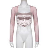 - The Long Sleeve Satin Bustier Crop Top is the perfect addition to your angelcore or fairycore wardrobe.