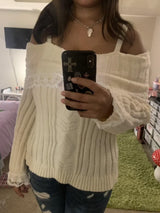 - The perfect blend of flirty and cozy, this sweater is sure to be a go-to piece in your wardrobe, whether you're running errands or out on the town.