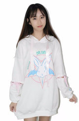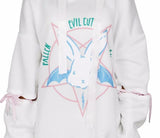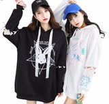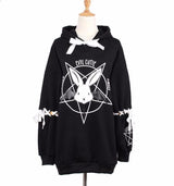 - This evil cute pentagram bunny patchwork hoodie has so many unique details that are sure to score you endless compliments.