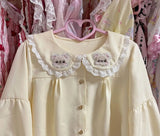 Exquisite Details: Featuring a sailor-inspired collar with intricate lace trim and cute teddy bear appliqués, this blouse is a must-have for any kawaii fashion enthusiast. The soft cream color enhances its sweet aesthetic.