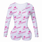 - This sassy "Yes Daddy" long-sleeve romper is so sweet & cozy, you'll want to romp around in it 24/7!