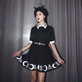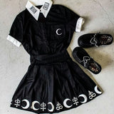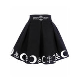 • An incredible gothic inspired "Witch Craft" pleated skirt with a gorgeous pentagram and moon pattern along the bottom and the words "Witch Craft" along the waist.
