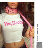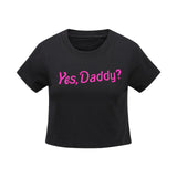 - These cute "Yes, Daddy?" cropped t-shirt tops are perfect for both lounging around the house, or dressing up to make a super cute outfit!