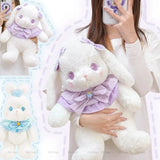 - Kawaii Inspired: Dressed in a delicate pastel purple dress, this bunny plush takes inspiration from kawaii fashion, complete with a frilly collar and a dainty bow for that extra touch of charm.