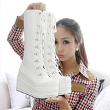 - Every kawaii babe needs a reliable pair of cute knee high boots in her shoe closet, so why not make them comfortable to walk in too with a full platform heel!