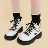 Complete your kawaii aesthetic with these heart-detailed, chain-adorned moto boots that are equal parts cute and bold!