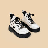 White Chained Ankle Moto Boots
