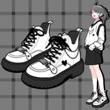 Level up your footwear game with these edgy White Chained Ankle Moto Boots! Perfect for lovers of the kawaii aesthetic and a little rocker edge, these boots blend adorable details with a tough moto style.
