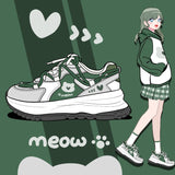 Perfect for cat lovers and fans of the kawaii aesthetic, these Meow Army Green Sneakers are a must-have addition to your footwear collection!