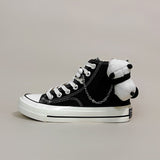 The chain and dinosaur design on these high top shoes is meant to make you smile and feel extra playful. It adds a touch of whimsical charm and prehistoric style to your outfit while keeping you comfortable and cheerful.