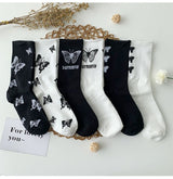 - Kawaii Butterfly Design: Featuring adorable black and white butterfly patterns, these socks bring a cute and unique touch to your wardrobe.