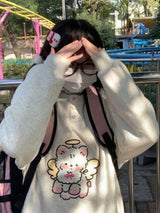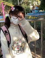• Adorable embroidered design – A fluffy white kitten with angel wings, a halo, and a tiny pink bow makes this cute sweater an instant favorite.