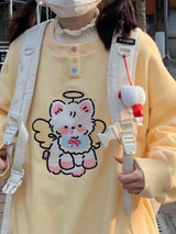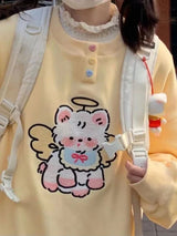 Β Β Get ready to melt hearts in this Fairy Kitten Crewneck! This kawaii pastel sweatshirt is the ultimate must-have for any fairy kei lover who adores all things cute and cozy. With its soft, buttery-yellow fabric and the sweetest embroidered angel kitten, this sweater is your new go-to for cuddly vibes. πŸ’–βœ¨