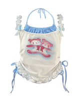 Get ready to add a touch of "kawaii aesthetic" to your wardrobe with this adorable Heartbreak Bunny Cami Top! Featuring a sweet and soft bear or bunny graphic on the front, this cute top is perfect for any fan of kawaii fashion. The cami is designed with ruffled details and sweet ribbon accents on the straps, creating a stylish, yet cozy look.