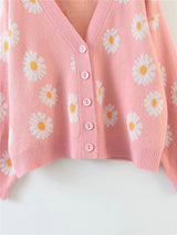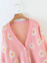 - Adorable Daisy Print: Each cardigan features a sweet daisy pattern, adding a fun and fresh vibe to your outfit. The vibrant daisies pop against the pastel background, giving you the perfect balance of cute and comfy.