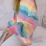 The “Lazy Days Pastel Rainbow Striped Top” is the ultimate cozy piece for your kawaii aesthetic! Perfect for days when you want to relax while still looking effortlessly cute, this top features dreamy pastel stripes that radiate positivity.
