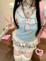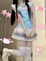 - Easy to Style: The light blue and white color palette makes this blouse a versatile piece that pairs effortlessly with skirts, jeans, or shorts for a kawaii-inspired look.