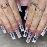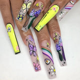 - Butterfly Bliss: Adorned with delicate blue butterflies and rhinestones, these nails bring a whimsical and airy feel to your fingertips. Ideal for those who love a touch of nature in their style.