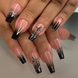 - Gothic Black Butterflies: These nails showcase an edgy black design with intricate butterfly patterns and gemstone accents, making them perfect for a bold, gothic aesthetic.