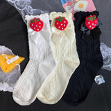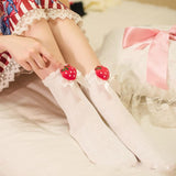 - These stunning lace ankle-high stockings feature elegant ruffles on the top with a strawberry embellished silk ribbon for ultimate dainty berry babe vibes.