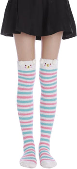 - These furry tall thigh high stockings will have you feeling like a princess. Warm, cozy, and so soft on your skin.