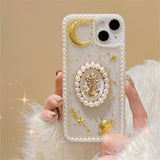 - 💖 Angelic Beauty: Elevate your iPhone's style with this white & gold angelic aesthetic Cameo iPhone Case. Adorned with a baroque inspired cameo with gold stars and moons, it's perfect for those who appreciate artistic expressions and elegance. The pearls take it to the next level of regal.