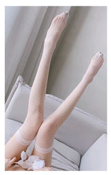 - These luxurious pink (or color of your choice) fishnet stockings with cute lace garter details are made of high quality stretchy tight-knit fishnet material that feels wonderful against the skin while being durable and long lasting!