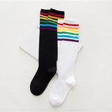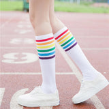 - These awesome rainbow striped socks sit just below the knee and add major appeal to your shorts or skirts!