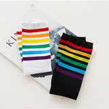 - Available in black or white, show your rainbow pride off with these cute socks!