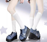 Elevate your style with the edgy yet cute “Denim Y2K Platform Mary Jane Shoes”! These eye-catching platform shoes blend a bold goth aesthetic with a playful twist, making them a must-have for any fashion-forward wardrobe.