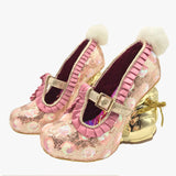 - Shimmering first class metals for the buckles and gorgeous 3D golden bunny rabbit heel.