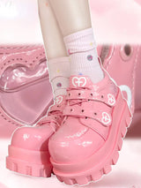 - Kawaii Chic: Embrace the adorable charm of Menhera fashion with our Pink Menhera Platform Shoes, available in shiny pink, purple, or black.