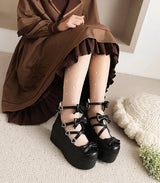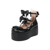 These platform Mary Janes aren't just limited to pink—they come in a variety of colors to match your mood and style. Perfect for pairing with knee-high socks or patterned tights, they're a must-have for anyone embracing the kawaii aesthetic. Add these to your collection and stand out with their unique bow and heart details!