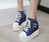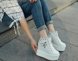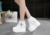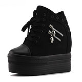 - With convenient laces, studs, skull zippers, and a soft cushion interior, these sky high shoes are sure to make your feet happy!
