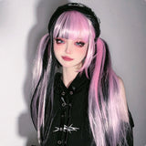 - Dual-Toned Design: Featuring a bold contrast of pastel pink and jet-black stripes, this wig gives off a sleek, goth vibe while maintaining an adorable kawaii touch.