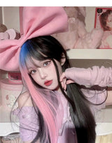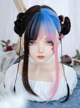 • This stunning long pastel goth inspired pink & blue money piece cosplay wig combines a sweet fringe with a beautiful pop of color. A gorgeous combination.