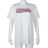 - Made of comfortable soft quality cotton blend fabric, with a quality screen print in bright pink 90s font, this top is the perfect addition/base to any outfit!