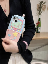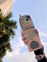 - Retro Flip Phone Design: Styled like an adorable vintage flip phone, this case brings a nostalgic touch with pastel buttons, a cute antenna, and a small flip-out mirror for quick touch-ups on the go.