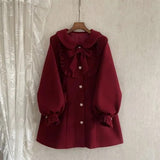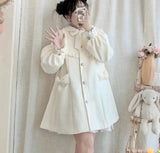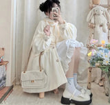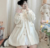 This “Dolly Cream Button Up Jacket” is perfect for anyone looking for a cozy yet stylish addition to their wardrobe. Featuring an elegant bow collar and charming ruffles, this jacket exudes a classic kawaii aesthetic that is both sweet and sophisticated.