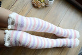 - These furry adult sized thigh high stockings will have you feeling like a princess. Warm, cozy, and so soft on your skin.