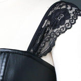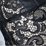 - This stunning vegan leather & lace corset dress has so many luxurious and flattering details,.